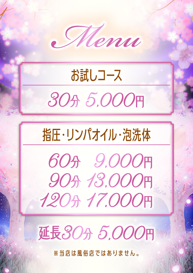 セラピスト界きってのマッサージレベルはまさに、最高…と声が漏れ出てしまうほど、そして溢れんばかりの胸と、雅な雰囲気ため息連発のスーパーテクニックはお客様の魂が奪われてしまう可能性がございますのでご注意ください。日常のマッサージに飽きてきた…そんなお客様は是非施術を受けてください。きっと日頃のマッサージとは一味も二味も違う経験が待っております。